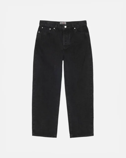 Baggy jean in washed cotton canvas with a needle punch effect. Oversized waist with a relaxed rise and roomy thigh that tapers to the cuff. Features branded nickel shank hardware and a suede Stüssy logo patch. Size down for a true-to-size fit in the waist, or order your normal size for a baggier fit.