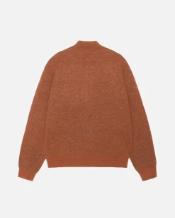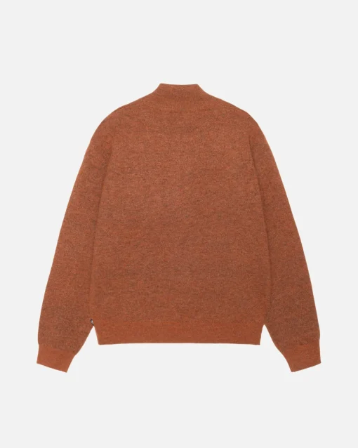 Classic fit midweight sweater. Features a mock neck collar, half zip closure and single chest pocket. Stüssy swirly “S” in tonal embroidery at the front.