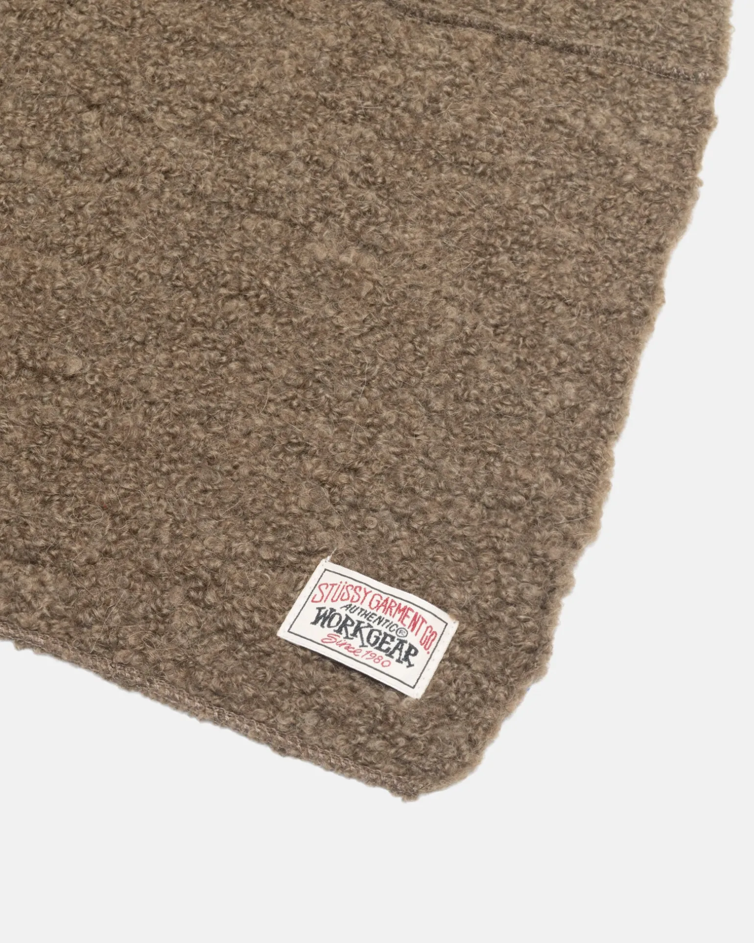 Textured scarf knit from a wool alpaca blend. Stüssy workgear label stitched at the edge.