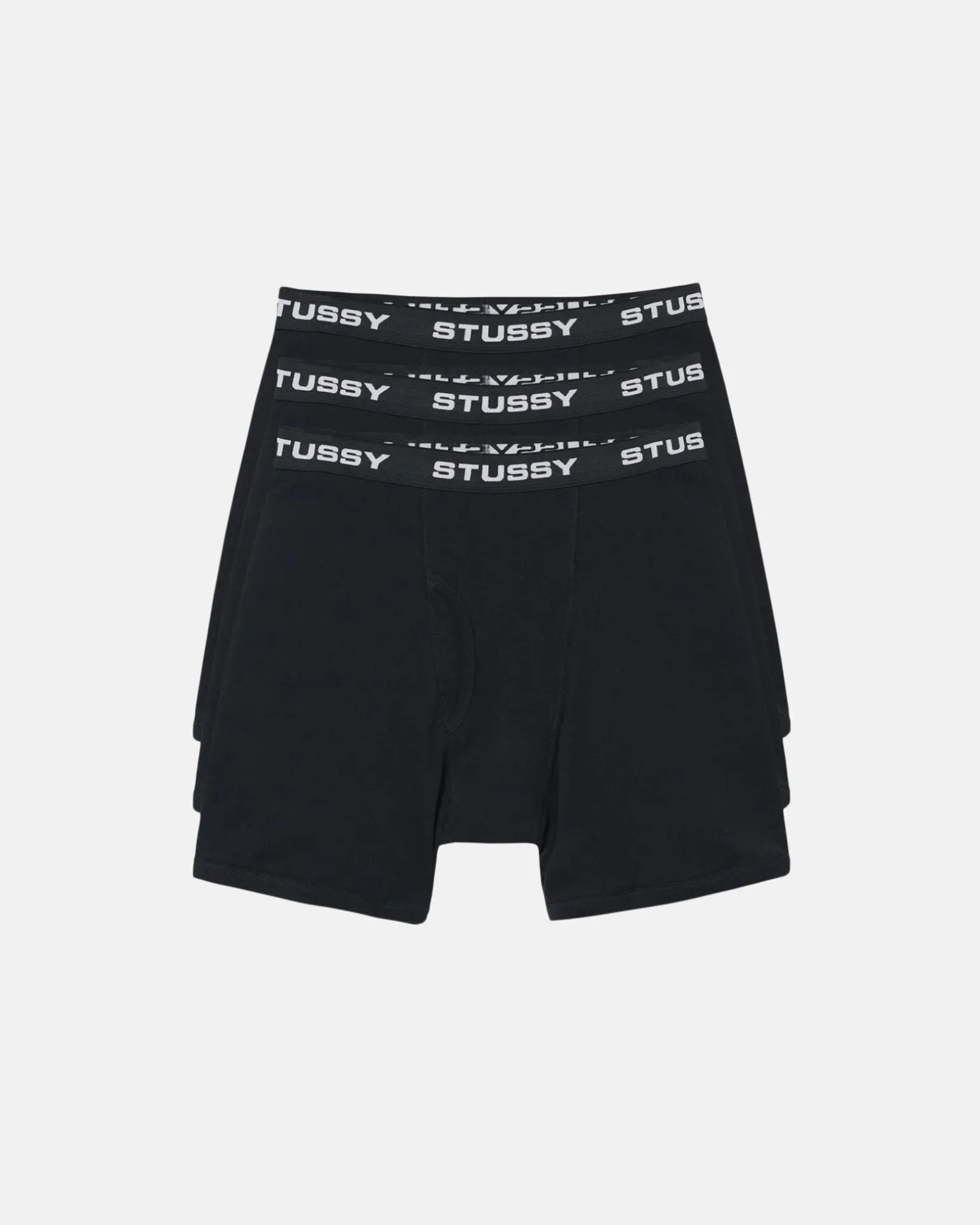 Three pack of cotton boxer briefs. Stüssy branded elastic waist.