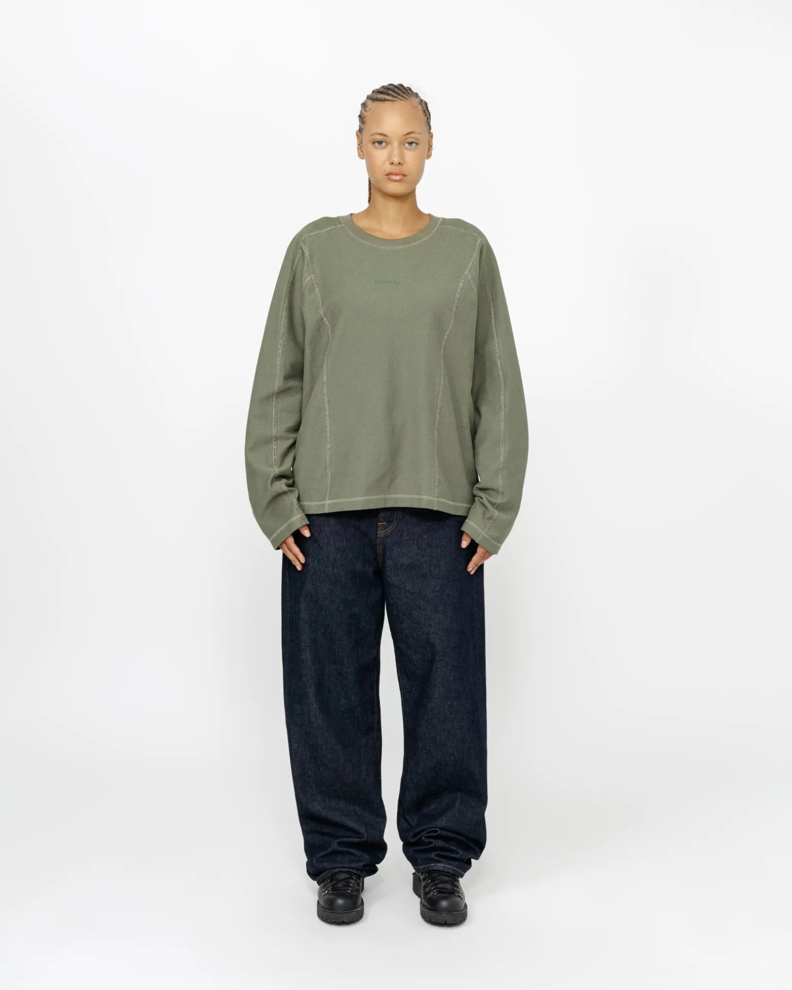 Relaxed fit crewneck tee in textured cotton jersey. Stüssy helvetica logo printed at the chest.
