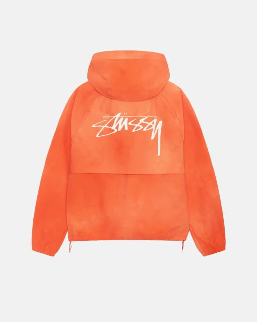 Relaxed shell jacket in textured wave dyed nylon. Features a front zip closure with adjustable drawcords in the hood and hem. Stüssy smooth stock logo printed at the left chest and across the back.