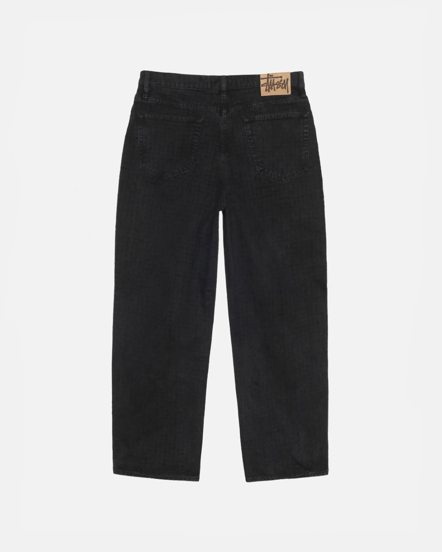Baggy jean in washed cotton canvas with a needle punch effect. Oversized waist with a relaxed rise and roomy thigh that tapers to the cuff. Features branded nickel shank hardware and a suede Stüssy logo patch. Size down for a true-to-size fit in the waist, or order your normal size for a baggier fit.