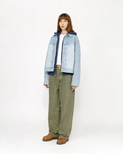 Baggy jean in 14.5oz cotton denim. Oversized waist with a relaxed rise and roomy thigh that tapers to the cuff. Features branded nickel shank hardware and a suede Stüssy logo patch. Size down for a true-to-size fit in the waist, or order your normal size for a baggier fit.