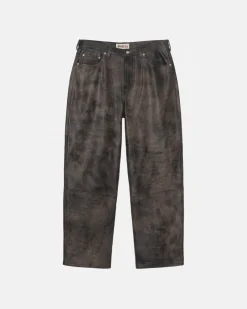 Baggy jean in stonewashed leather. Oversized with an extra wide cut that’s roomy in the thigh and tapers to the cuff. Features branded nickel shank hardware, and a suede Stüssy basic stock logo patch.
