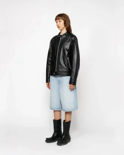 Baggy short in 14.5oz cotton denim. Oversized waist with a relaxed rise and roomy cut. Features branded nickel shank hardware and a suede Stüssy logo patch. Size down for a true-to-size fit in the waist, or order your normal size for a baggier fit.