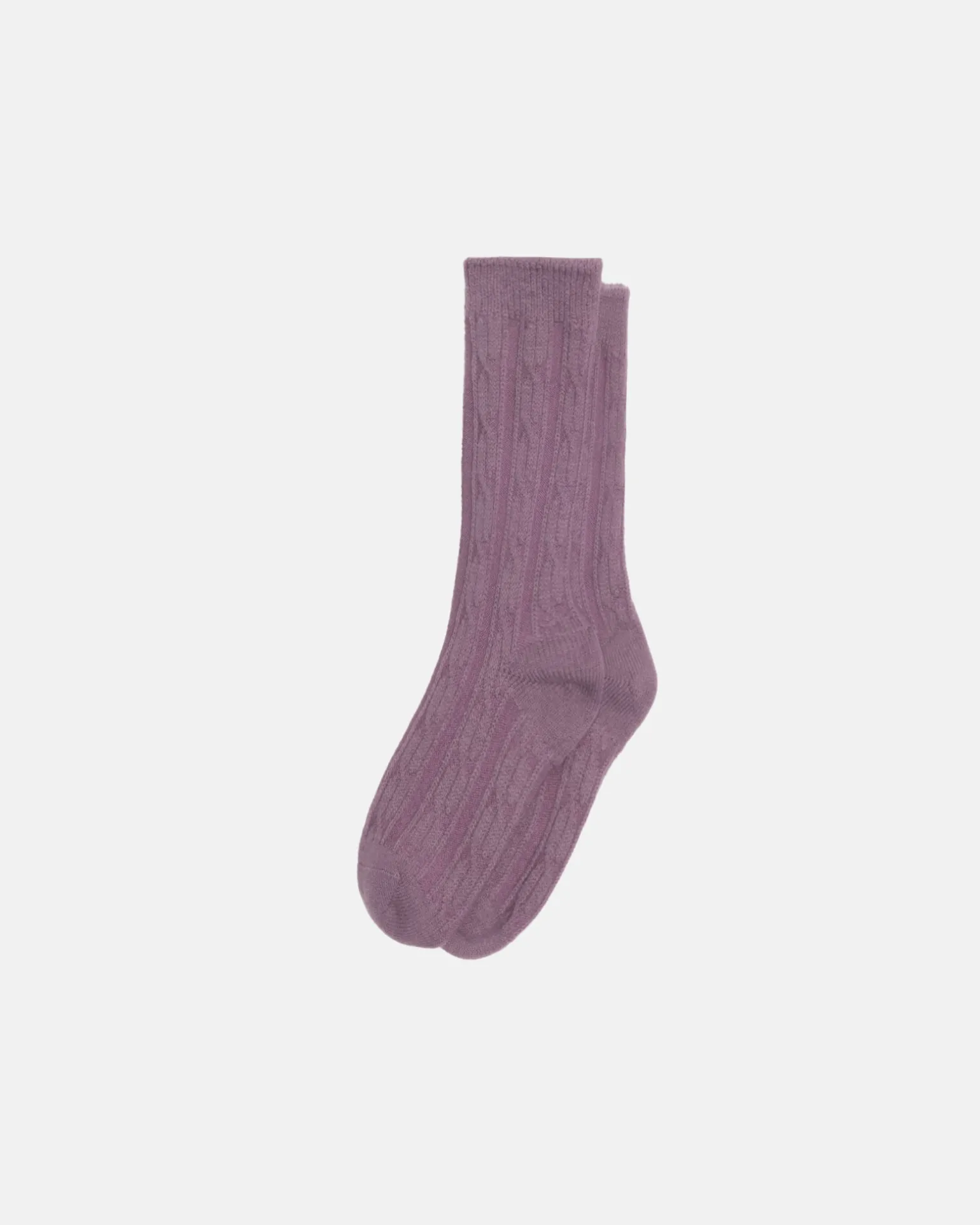 Single pair of wool dress socks with a raised jacquard cable knit pattern.