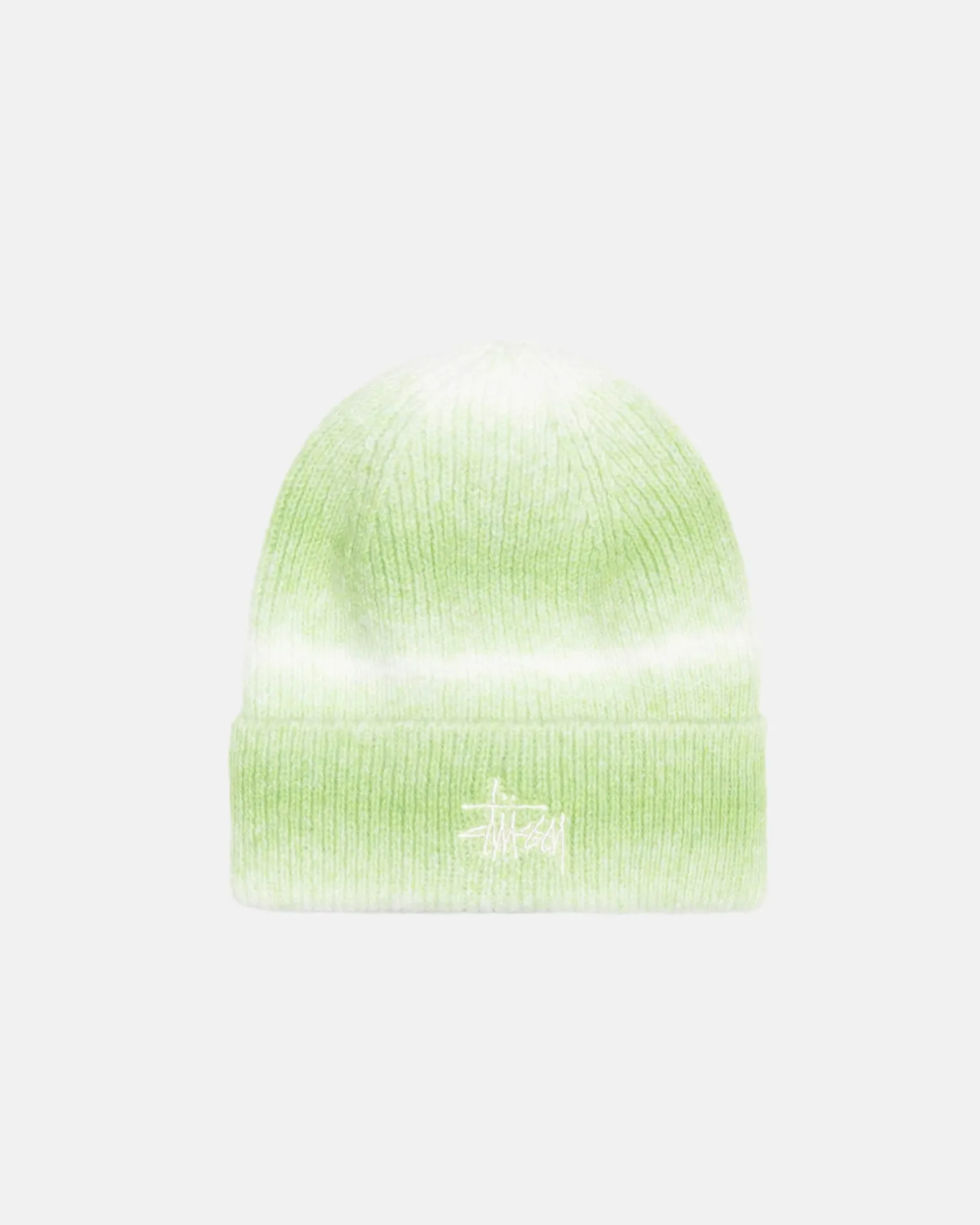 Fitted ribbed beanie knit with a striped pattern. Stüssy basic stock logo embroidered at the front.