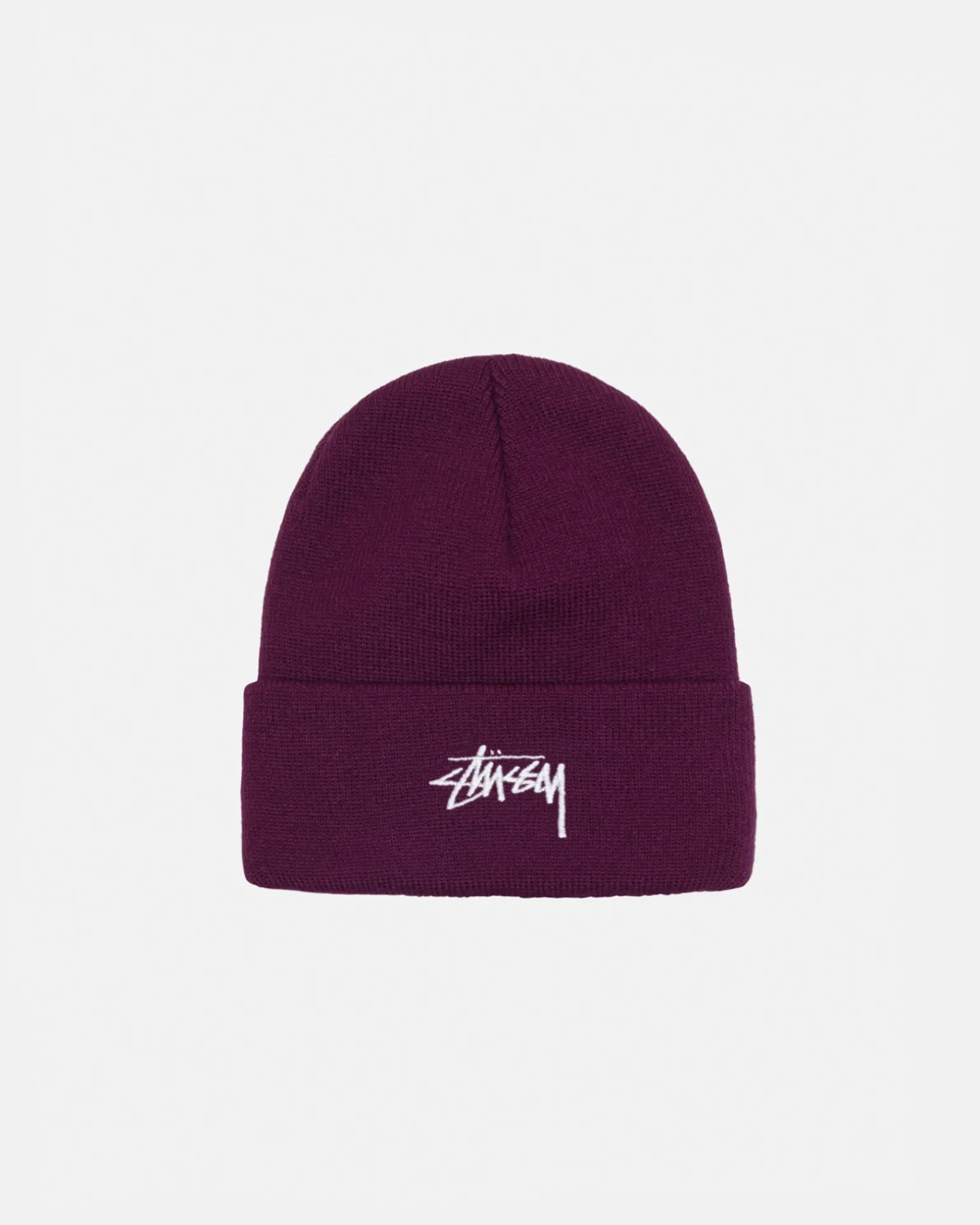 Fitted beanie with a soft ribbed texture. Stüssy stock logo embroidered at the front.