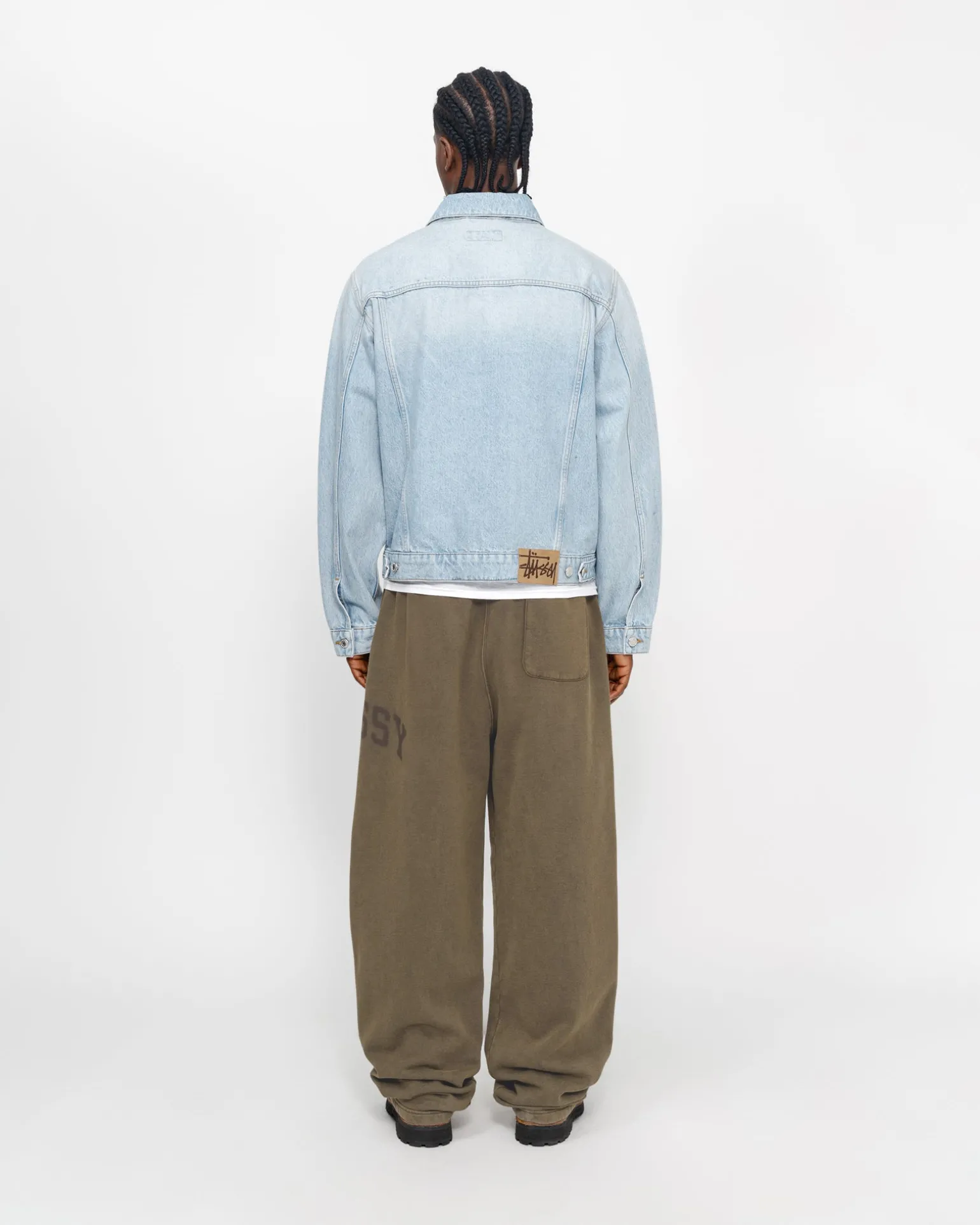 Relaxed fit sweatpant in a heavy 15.8oz cotton blend with a faded wash. Stüssy arch logo at the side.