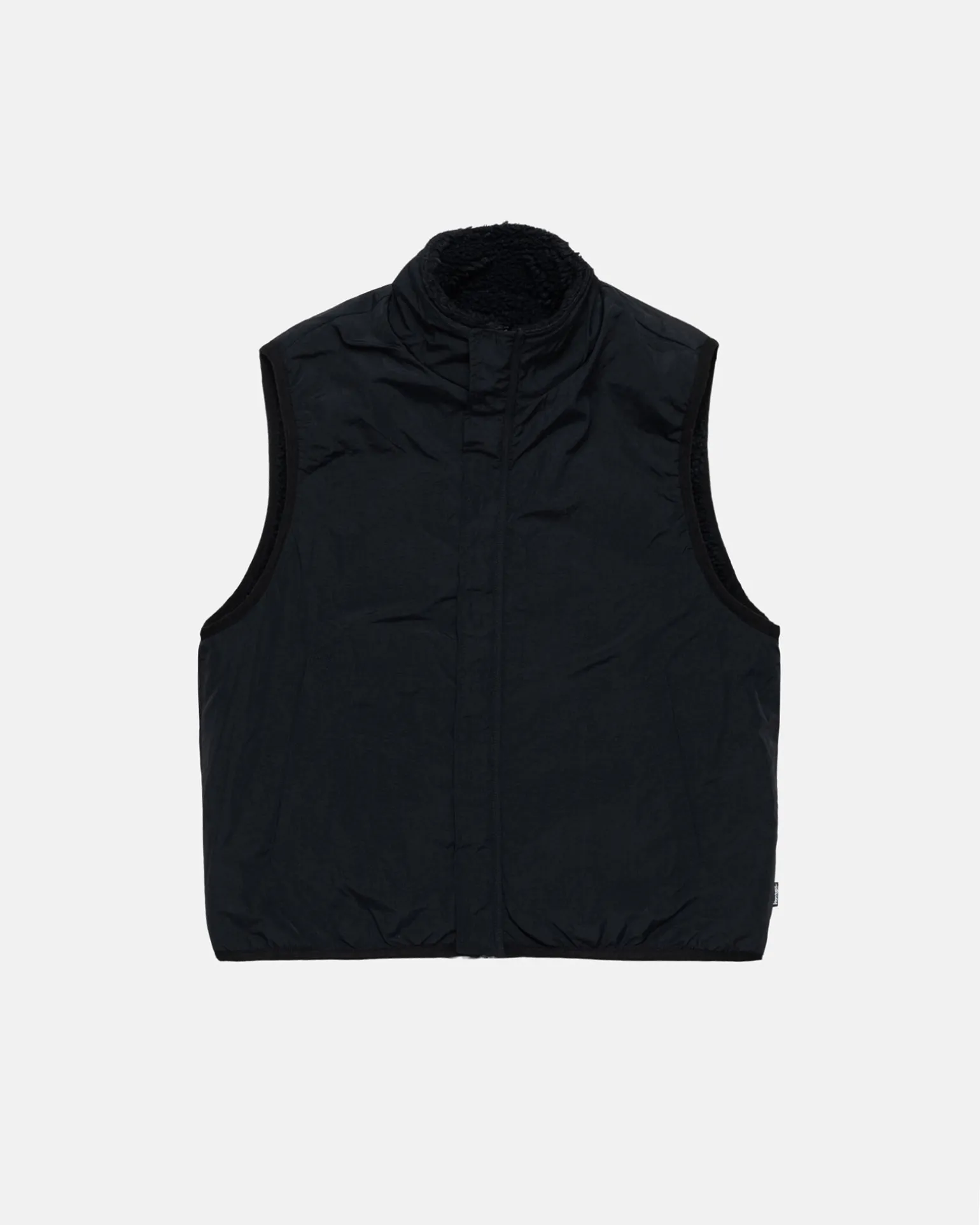 Classic fit reversible vest. Sherpa fleece exterior with a zip closure, nylon taslan pockets and Stüssy stock logo embroidery. Nylon interior with welt pockets and Stüssy stock flag label stitched at the side seam.
