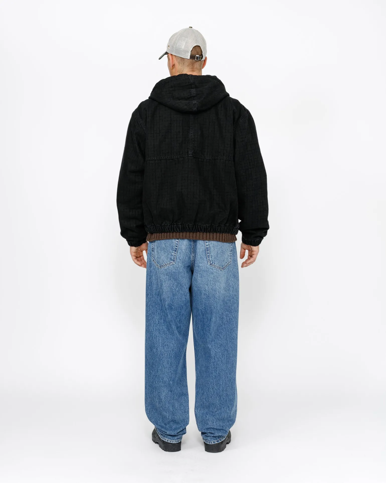 Hooded work jacket in stonewashed cotton canvas with a needle punch effect. Boxy fit featuring vertical quilting, a zip front closure and welt pockets. Stüssy authentic workgear label woven at the front.