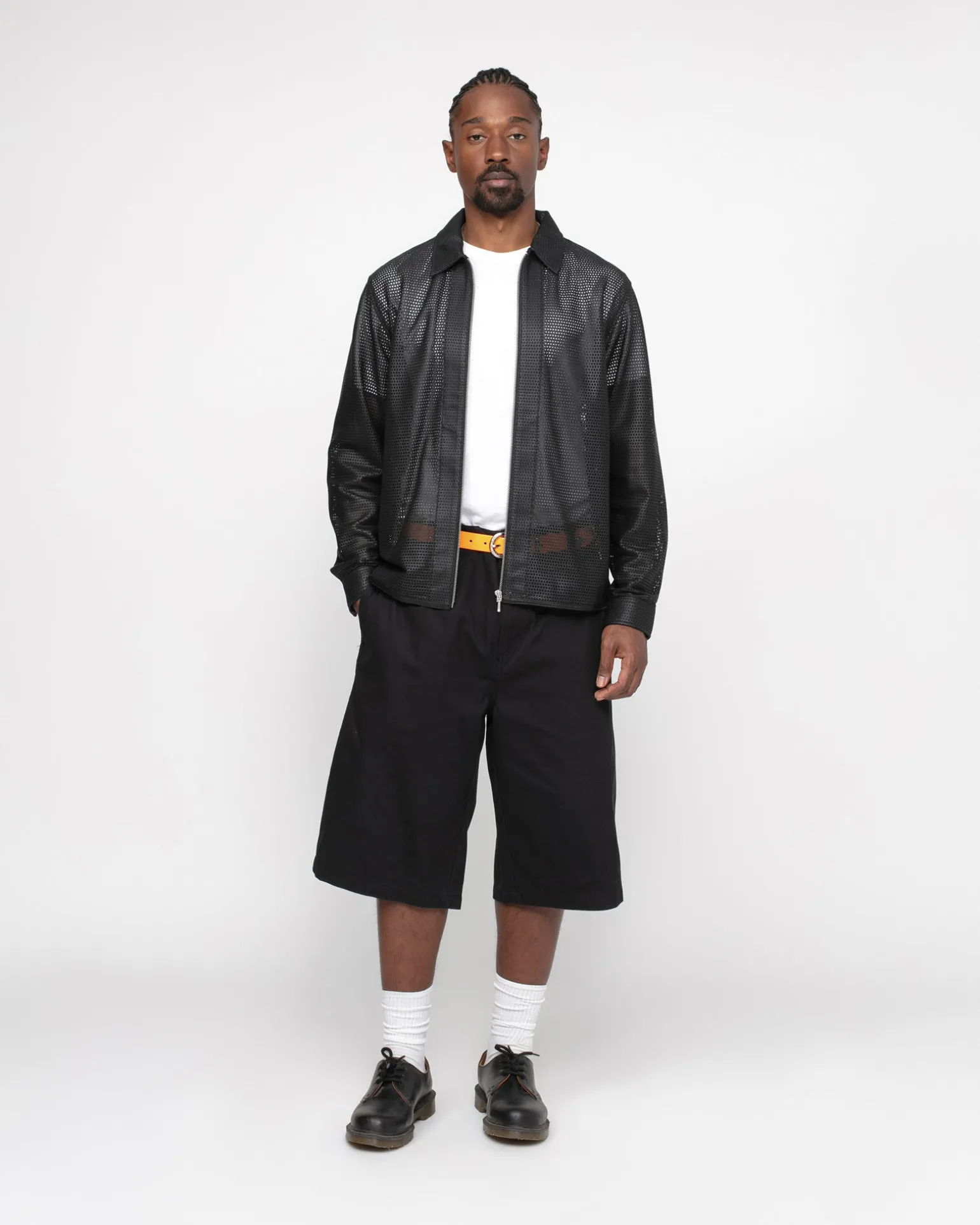 Relaxed fit shirt in unlined perforated leather. Features a zip closure and Stüssy authentic workgear label stitched at the side.